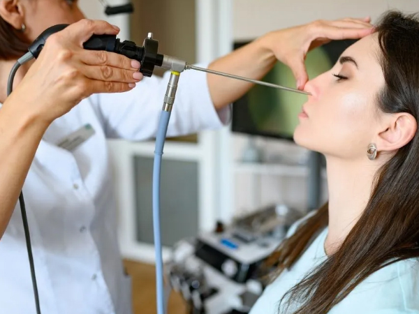 Nasal endoscopy is a procedure to look at the nasal and sinus passages. It's done with an endoscope. This is a thin, flexible tube with a tiny camera and a light.