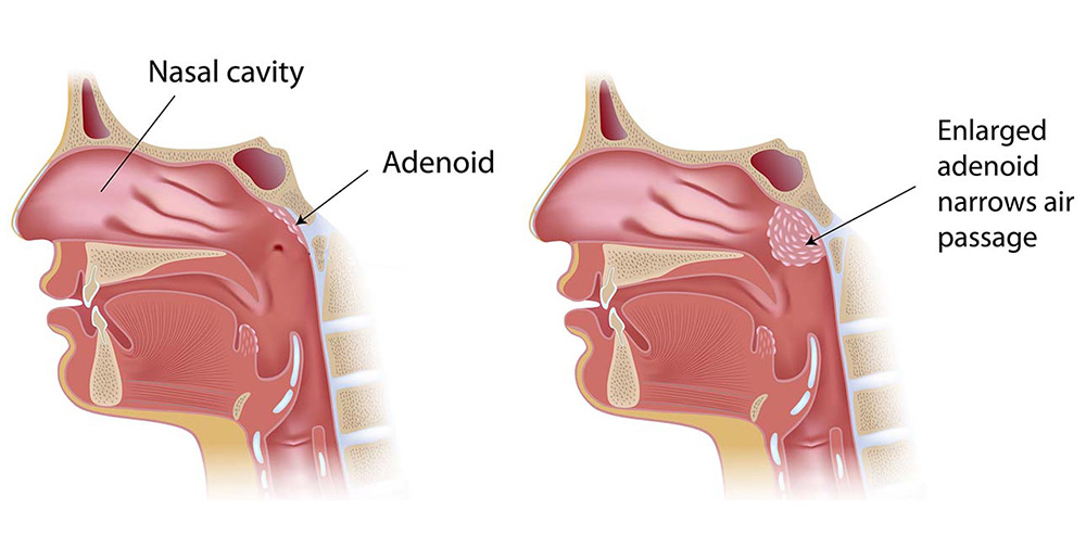 Enlargement or infection of the adenoids often occurs due to repeated upper respiratory tract infections, allergies, or chronic sinusitis. In some children, adenoids naturally grow large and may block the airway or eustachian tube, even without active infection.