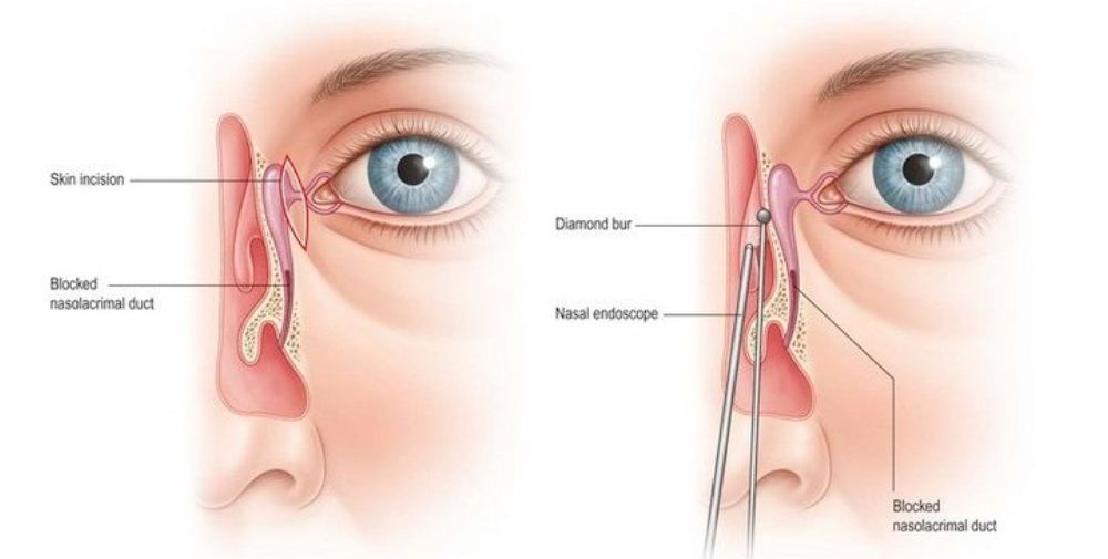 Endoscopic DCR is performed using a nasal endoscope, eliminating the need for an external skin incision. Under local or general anesthesia, the surgeon accesses the blocked tear duct through the nasal cavity, removes the bony obstruction, and creates a new passage between the lacrimal sac and nasal cavity to restore tear drainage. A small silicone stent may be inserted temporarily to keep the passage open during healing.
