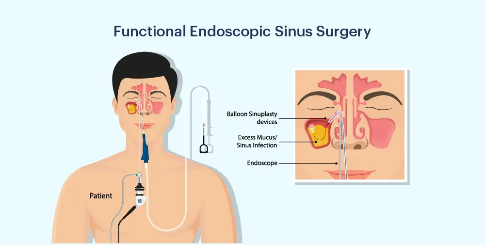 Functional Endoscopic Sinus Surgery (FESS) is a minimally invasive surgical procedure used to treat chronic sinus problems and improve sinus drainage. It is typically recommended when medical treatments like antibiotics, nasal sprays, or antihistamines fail to relieve symptoms. The procedure involves using a thin, flexible endoscope with a camera to visualize the nasal passages and sinuses, allowing the surgeon to remove blockages, polyps, or diseased tissue while preserving healthy structures.