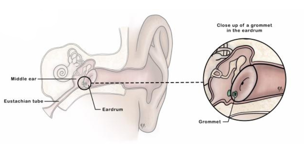 When conservative treatments like antibiotics, nasal sprays, or observation fail to resolve fluid accumulation after several weeks or months, grommet insertion is recommended. The procedure is performed under general anesthesia. A small incision is made in the eardrum (myringotomy), the fluid is suctioned out, and the grommet is inserted. The tube remains in place for 6–12 months, naturally falling out as the eardrum heals. Post-surgery, patients usually notice immediate hearing improvement. Water precautions may be advised to prevent infections.
